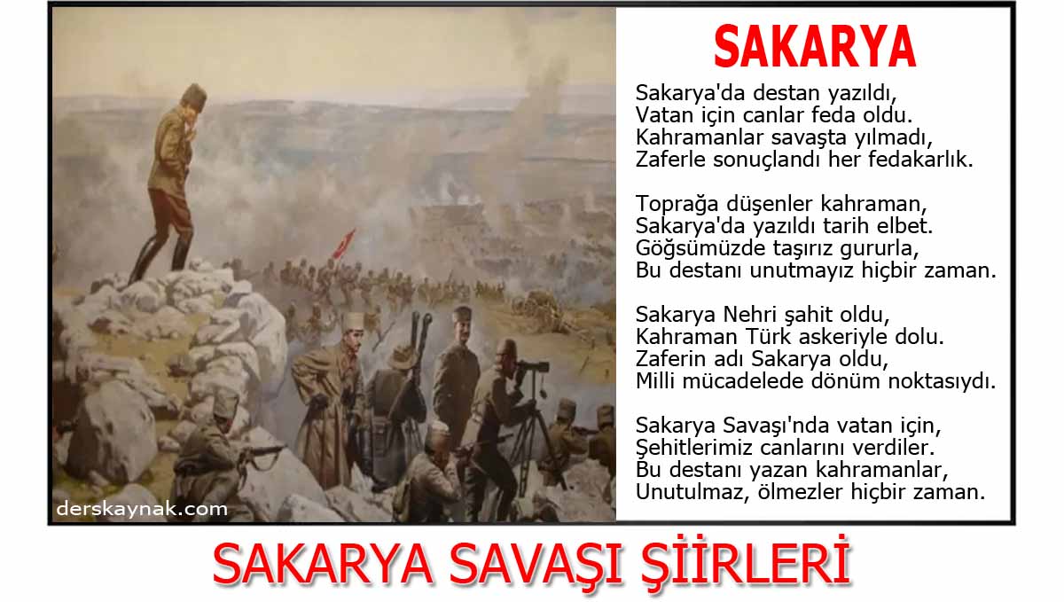 Sakarya savaşı ile ilgili şiirler başlığı içerisinde 23 Ağustos’tan 13 Eylül 1921’e kadar 21 gün gece gündüz aralıksız süren, Sakarya Nehri kıyılarında gerçekleşen Sakarya meydan muharebesi, Mustafa Kemal Atatürk komutasındaki Türk ordusu tarafından kazanıldı. Sakarya zaferinin önemini anlatan özgün birbirinden güzel şiir örneklerini sizler ile paylaştık.