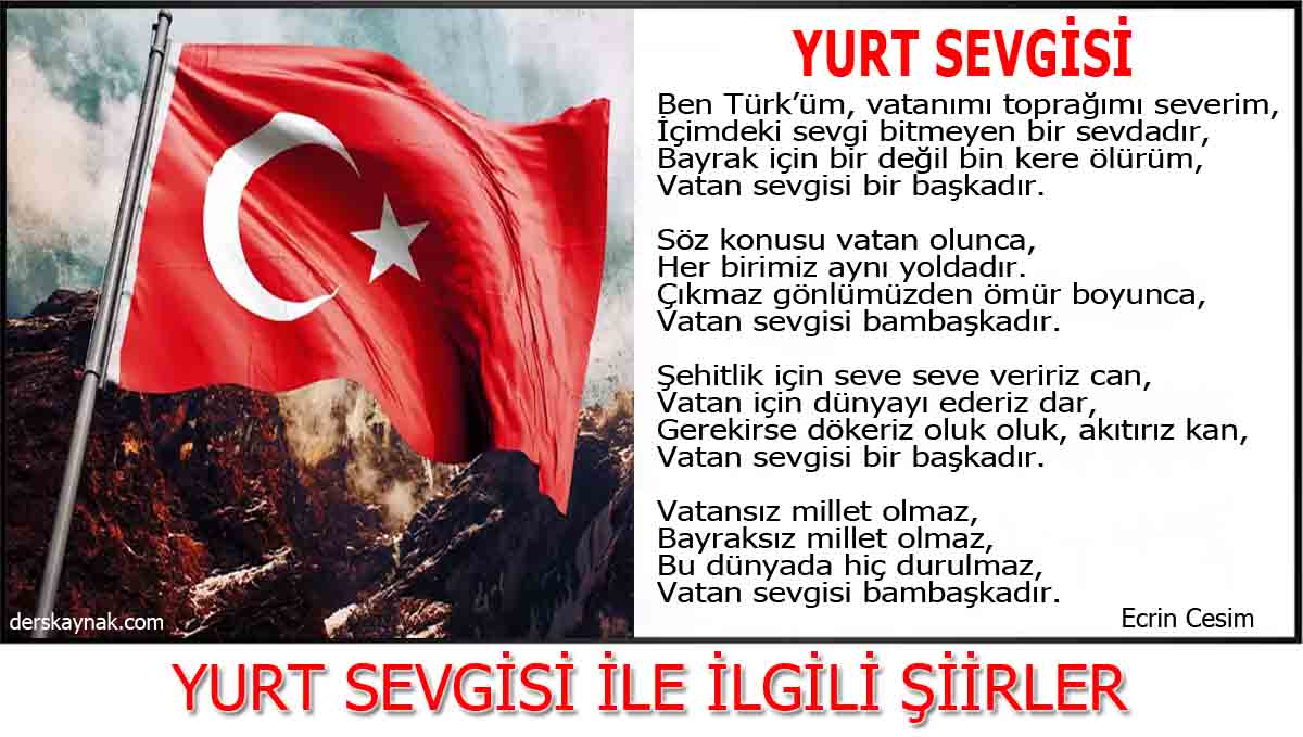 Yurt Sevgisi İle İlgili Şiir Kısa 2 Kıtalık: Yunus Emre İlkokulu – Erzincan/Merkez – Kaynak 6: